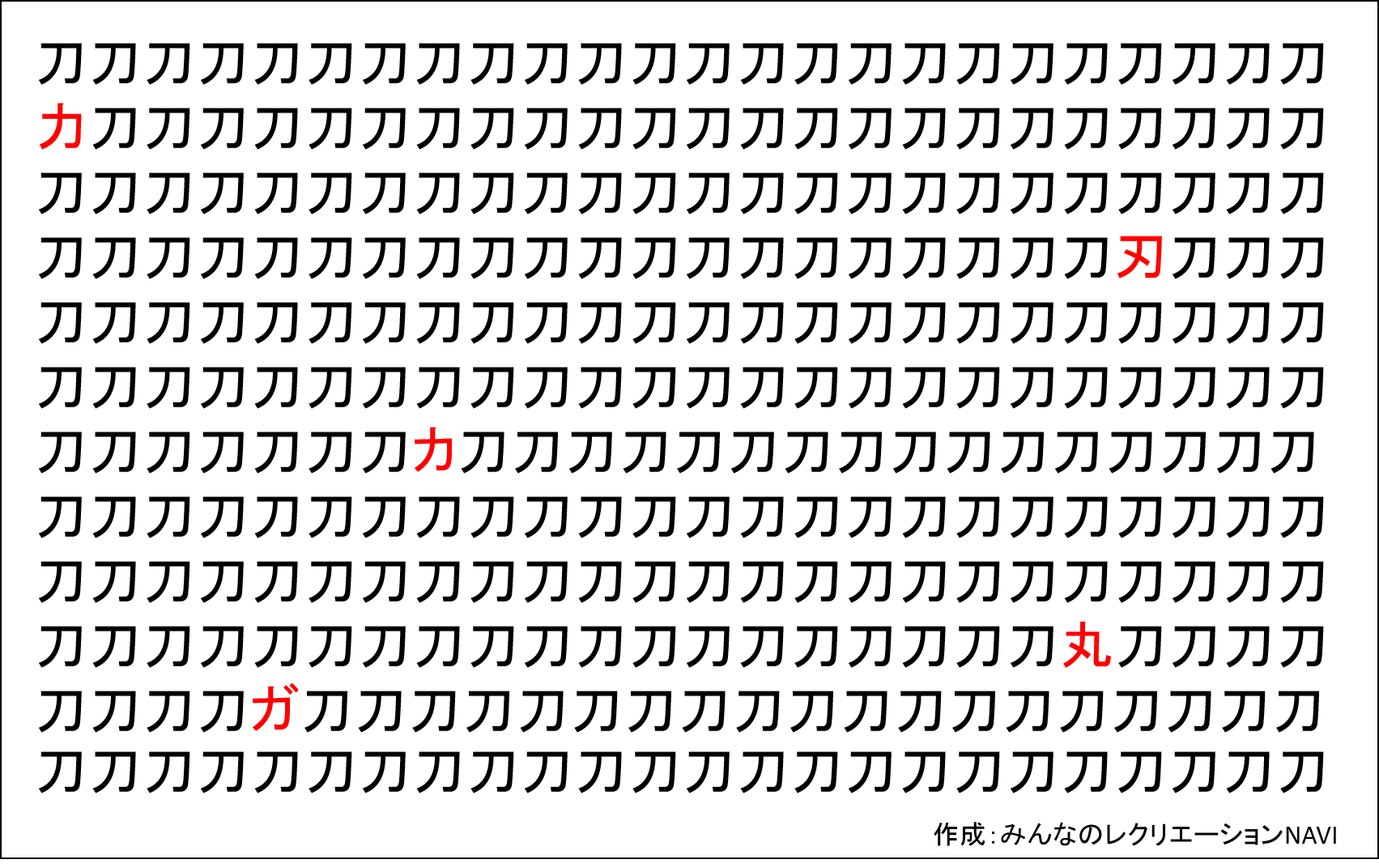 第3問:『刀』じゃない文字を5つ探せ!