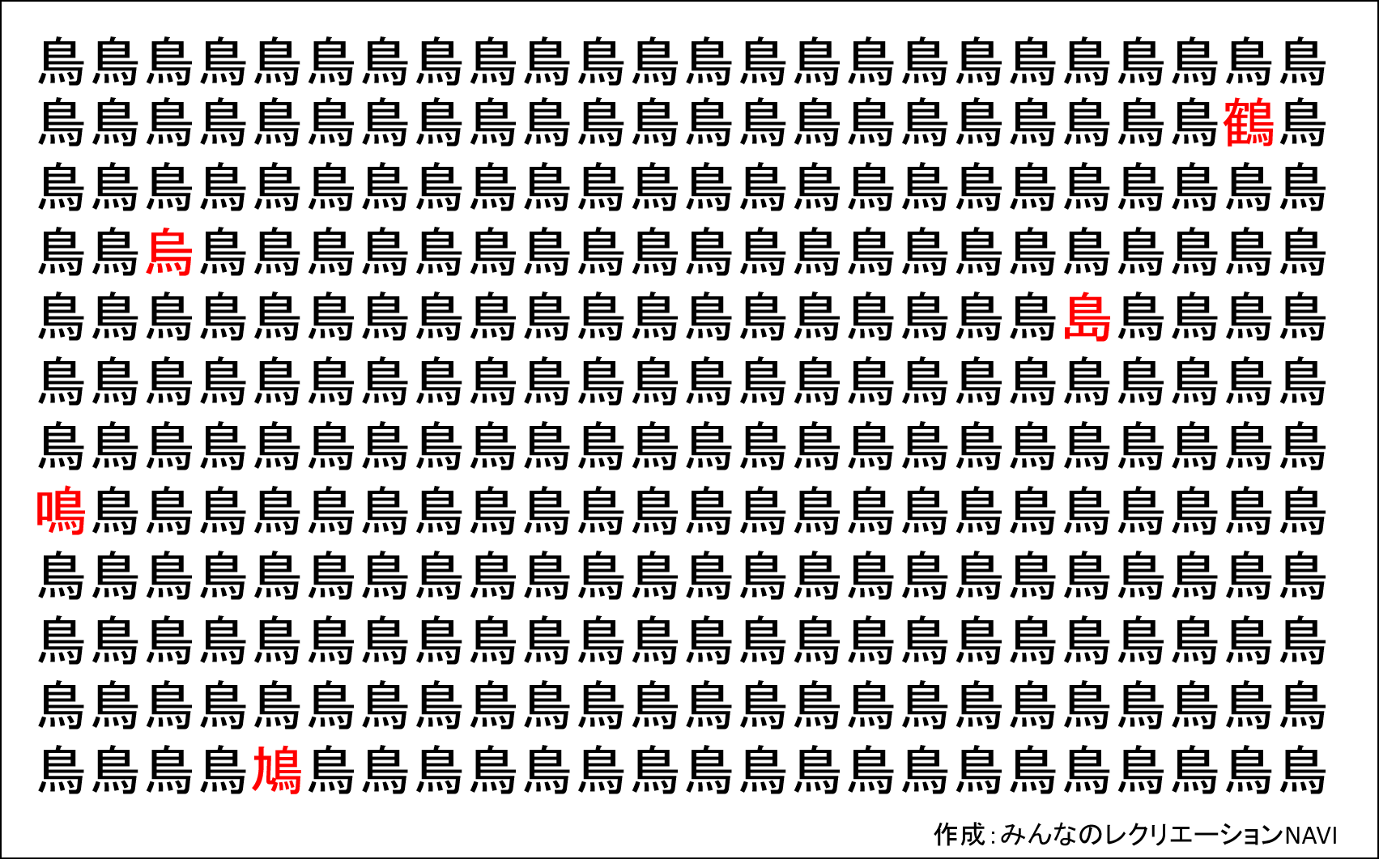 第4問:『鳥』じゃない漢字を5つ探せ!