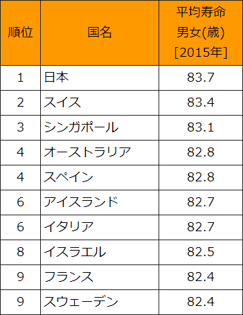 巷で言われている『長寿大国日本』というフレーズは間違いなく正しいことが分かります。
